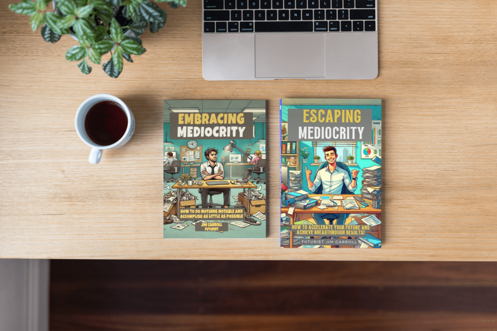 These are actually team-building books. A motivational work for individuals. A strategic guide for leaders. A manual into tomorrow for organizations.In fact — it’s two books. One satirical. One serious. Together, they offer a brutally honest mirror and a powerful map.Embracing Mediocrity exposes the subtle, self-defeating behaviors, limiting beliefs, and cultural habits that keep us stuck — all disguised as a wickedly funny anti-manual. It has 125 tongue-in-cheek “recommendations” on how to underperform, disengage, and coast through life. Every line is a red flag, a warning, a reality check on the traps we all fall into.Escaping Mediocrity is the antidote. A bold, practical guide packed with 125 actionable strategies and breakthrough insights to help you rise above the average, ignite progress, and lead with purpose.Together, these books do what few leadership tools can:
